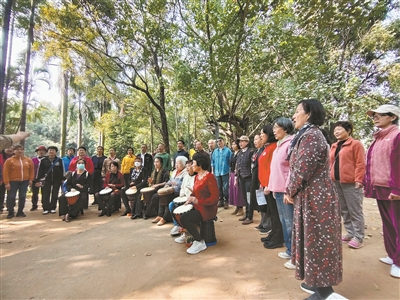 广州番禺一小区,来自各地的老人家在练歌,其乐融融。(资料图片)广州日报全媒体记者骆昌威摄