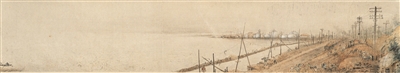 1956年 《武汉防汛图卷》(局部) 黎雄才 30.4×2788cm(全卷) 中国美术馆藏