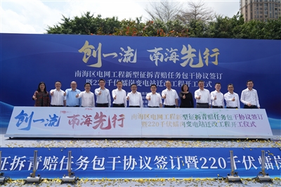区域发展,电力先行。3月13日,“创一流,南海先行”——南海区电网工程新型征拆青赔任务包干协议签订暨220千伏新雷岗变电站迁建工程开工仪式在广东金融高新技术服务区(以下简称“广东金融高新区”)举行。活动中签订了《南海区2025年主网基建项目征(占)地补偿框架协议》,在全省率先试点新型征拆青赔任务包干模式,将有效提升电网项目建设效率,助力地方和电网发展实现双赢。