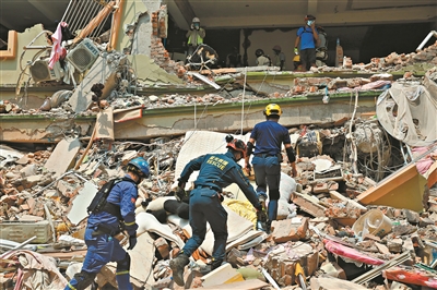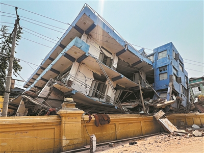 曼德勒市区内一个名为天空别墅的11层公寓建筑群受强震影响,三座楼体中的两座完全坍塌。据了解,另一座楼体5层以下发生坐沉垮塌,数百人遭掩埋,亟待救援。此项任务对救援专业技术水平要求很高,缅方特请中方救援队伍针对这座建筑展开搜救。