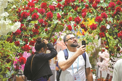 广交会二期展会,装饰品展区吸引采购商举起手机拍照。