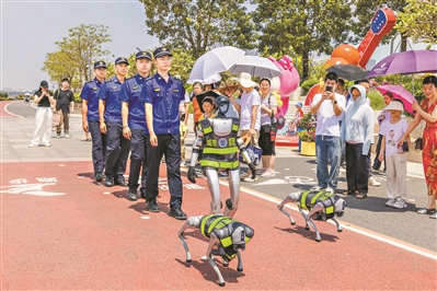 广州日报讯 (全媒体记者葛宇飞 通讯员万晓彤摄影报道)在过去的“五一”假期,滨海湾新区的公园里迎来了一道独特且引人注目的科技风景线。人工巡逻的城管有了特殊的“新同事”——智能巡逻机器人、机器狗,开启科技化辅助巡逻新模式。