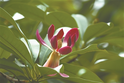 记者了解到,新品种“绛裳”是华南国家植物园园艺中心工作人员在2009年利用杂交育种、嫁接等技术培育的杂交品种,于2017年首次开花。该品种为常绿乔木,树形优美;叶革质,叶面青翠光润,叶背灰绿色;花紫红色,清香怡人,盛开时鲜艳夺目,是一种优良的园林景观树种。该品种喜光照充足和温暖湿润的环境,适宜热带至亚热带地区做园林绿化,可供公园、校园等地孤植、对植或群植观赏,具有较好的推广应用前景。