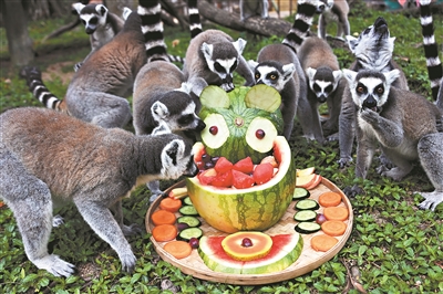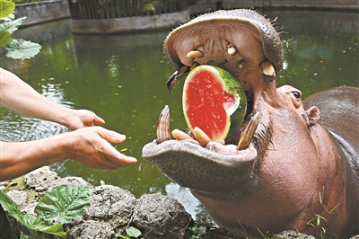 广州日报讯 (全媒体记者轩慧 通讯员李木生摄影报道)立夏已至,夏季到来,深圳野生动物园对园内的河马、环尾狐猴等动物安排了“清淡饮食”,其中清甜多汁的西瓜是不少动物爱吃的消暑食物。