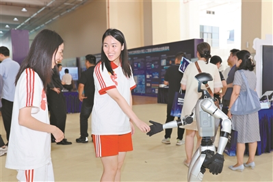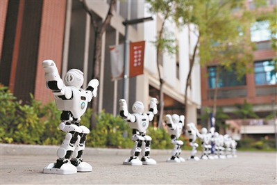 活动中,广州市及各区教育数字化成果集中亮相。企业展出的机器狗、智慧纸笔、棋类机器人、无人机足球等前沿技术在教育场景中的应用,也受到了众多学生和老师的关注。