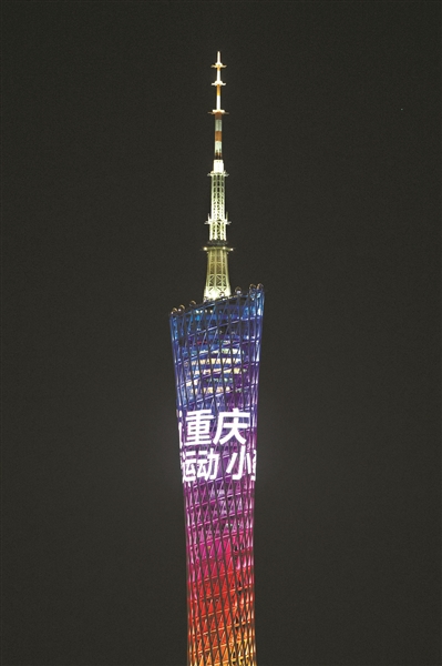 5月15日晚,广州塔亮灯为“十五运·十五城”重庆站活动助力。广州日报全媒体记者陈忧子摄