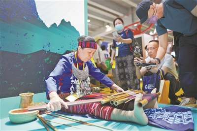 海南少数民族传统技艺现场展示,吸引了市民游客打卡拍照。图/广州日报全媒体记者王维宣