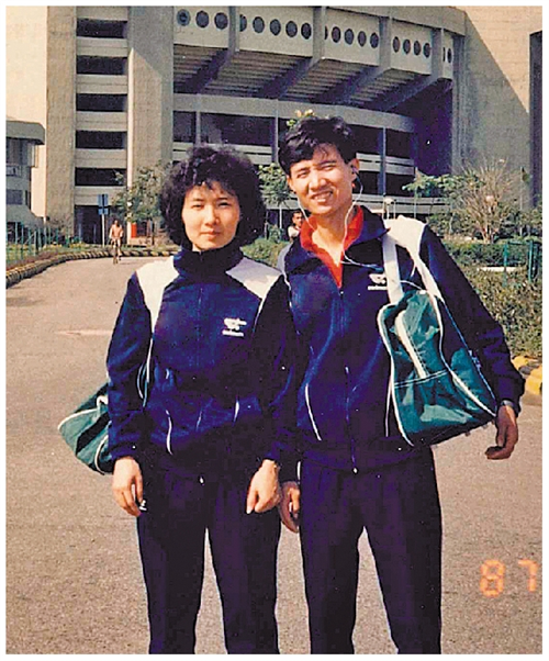 夫妇两人参加1987年在印度新德里举行的世乒赛。(受访者供图)