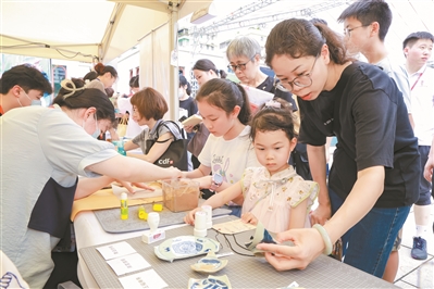 活动现场,AI问答互动体验、AI文创创意设计等环节轮番上演。团一大广场开设了四大主题区域。科技赋能区展出了“联合工作坊——博物馆虚拟仿真课程”,通过虚拟仿真技术,将博物馆的珍贵文物与深厚历史鲜活呈现,同时以AI问答体验,为观众架起“古今对话”的桥梁。有爱无碍区以“流淌在感官里的文化温暖”为主题,通过触觉、听觉、嗅觉为残障人士提供多感官文化体验。无界共创区邀请观众化身文化传承的“数字匠人”,现场体验AI文创设计。多元服务区展示各文博单位及数字科技企业的服务与文创产品,展现文化与科技的融合。