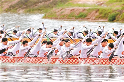 九龙湖畔,随着锣鼓声起,一支支龙舟队犹如离弦之箭,向终点发起冲刺,观众席响起阵阵加油呐喊声。本届赛事分为村社男子组、村社女子组以及企事业公开混合组,27支龙舟队伍在九龙湖展开一场激烈的水上竞逐。