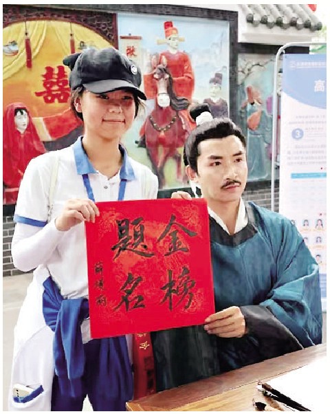 薛墁丽(左)与演员扮演的“苏东坡”合影。