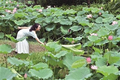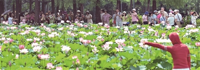 在禅荷花岛,幸运的话,市民还能见到为数不多的并蒂莲。这种莲花中的“双胞胎”茎秆一枝,花开两朵,在自然状态下生成概率仅为十万分之一,可谓荷花中的极品。但在禅荷花岛,几乎每年都能看到这种“珍稀荷花”的出现。