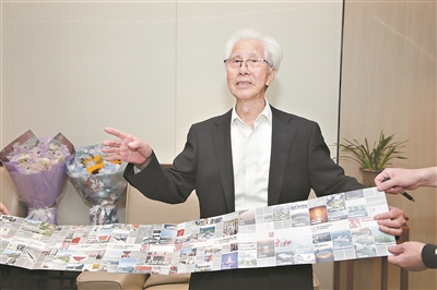 昨日,何镜堂从北京返穗,在机场接受媒体采访,介绍自己和团队多年来创作的作品。广州日报全媒体记者骆昌威 摄