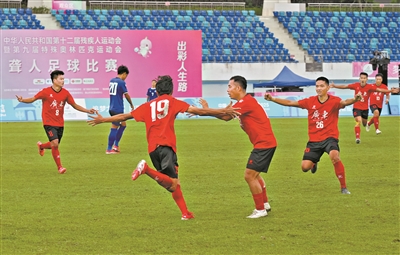 广州日报讯 (全媒体记者刘鹏飞)5月24日,全国第十二届残疾人运动会暨第九届特殊奥林匹克运动会聋人足球项目(十一人制男子组)圆满收官。在决赛中,辽宁队与广东队上演巅峰对决。常规时间中,两队比分定格在1比1。在点球大战中,广东队以5比4取胜,最终以总比分6比5战胜辽宁队,获得本届残特奥会夏季项目首金。
