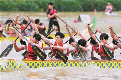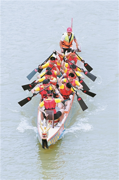 龙舟上队员们奋力划桨。广州日报全媒体记者莫伟浓 摄