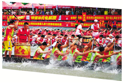 广州日报讯 (全媒体记者黄文生摄影报道)昨天下午,广东省第七届传统龙舟“大有杯”争霸赛在新会大泽龙舟文化公园举行,共有15支龙舟队伍参赛,其中江门市内11支,来自佛山、中山、肇庆等地4支,约1200人展开激烈的龙舟竞渡。此次比赛秉承传统,采用往返式竞赛方式,大量游客前往观看,在雨中见证这一精彩纷呈的体育盛事。经过激烈的角逐,新会泓达堂陈皮龙舟队获得冠军;第二名为大泽长湾飞龙龙舟队;第三名为九江双蒸青年龙舟队。