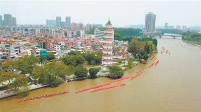 “东莞龙舟第一景”——万江龙舟趁景活动在东江举行。