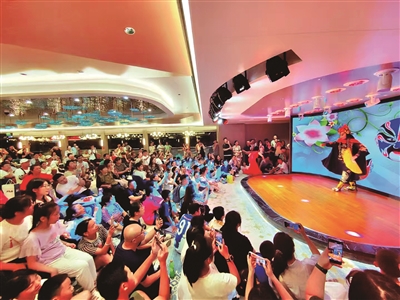 “长航朝天星河”还打造了一系列沉浸式巴渝文化展演,如川剧变脸、国风舞蹈、剑术表演、茶艺展示、传统书法等多类地域特色体验。长江上的首个“水上邮局”,不仅为旅客提供特色文创产品,还可寄出满载回忆的明信片,留下美好旅途印记。