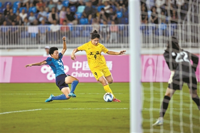叶欣怡和方珍珠、刘钰可这个广东队“三叉戟”进攻组合在首战就展露出强大的火力。赛后,叶欣怡被组委会评为当场最佳球员。“首战心情很激动,能赢下来很兴奋。这里的场地环境很好,观众氛围也很好。首战赢了之后,大家的心情没有那么紧张,希望接下来越踢越好。”