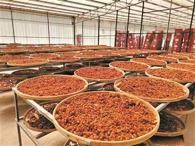 在荔枝加工方面,满山红荔枝种植农民专业合作社同样走在前列。针对老品种怀枝保鲜难的问题,合作社将荔枝鲜果经过72小时低温烘干制成荔枝干,不仅保留了荔枝本味,还延长了储存时间,保障了荔农收入。此外,还研发了荔枝酒、荔枝蝉茶、荔枝奶茶、荔枝蛋酥卷、荔枝腊味等多品类商品投入市场,大大提高了古竹荔枝全产业链价值。