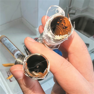 住户家中拆下来的角阀锈迹斑斑。
