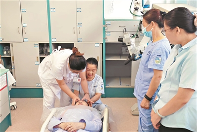 “翻身防压疮、心肺复苏都得考!”区洁芬介绍说,护理员由专科护士培训,归属护理部直管,每年每个科室的护理员都由专科的护士进行培训,例如预防跌倒、心肺复苏等等。特别值得一提的是,该院医疗护理员有严格的准入制度,经过陪护公司、科室、院级管理人员培训及考核达标才能上岗,系统掌握专业知识和病人的生活照护技能,能够从生活照顾、护送检查、术后康复照护等各个方面为患者提供24小时全方位、多层次、无缝隙的贴心照料。