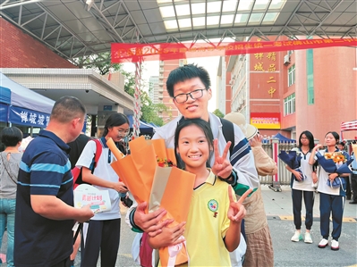 当日下午,当最后一科生物结束时,佛山二中考生黄同学同样激动万分:“我第一个出考场。”考场外,黄同学的妈妈和妹妹早已翘首以盼。在鲜花的簇拥下,黄同学感慨道:“高中三年其实没那么难,一路拼搏过来,虽然有困难,但也有收获。”