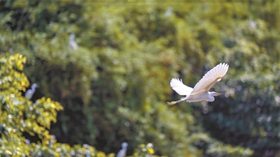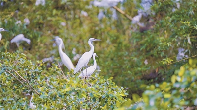江门市新会“小鸟天堂”,是巴金笔下“鸟的天堂”的原型地,是珠三角地区罕见的天然鸟类栖息地。经历了400多年时间,新会小鸟天堂古榕树树冠扩展至13000平方米,鹭鸟种群稳定增长,湿地生态逐年向好,内有长期居住的鹭鸟35000只,栖息着夜鹭、白鹭等178种鸟类,其中不乏国家二级保护动物。