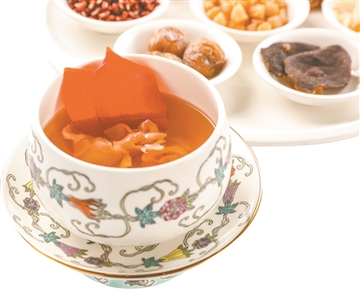 只见林师傅将扁豆慢火炒至金黄,加入汤中与五指毛桃、花胶相融合,耐心炖足6小时,汤水清而不寡,呈橙黄淡乳白色。一口热汤缓缓下肚,五指毛桃的淡椰香、扁豆香浓醇,与花胶的鲜争相在口腔弥散,花胶软糯胶滑,豆粒绵软起沙,汤汁醇厚不腻。在炎炎夏日,一碗汤似清风温和,脾胃燥热尽除,人都舒服了许多。