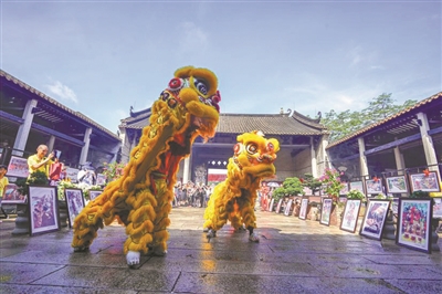 古祠堂里狮舞腾跃,展现番禺岭南古邑文化魅力。广州日报全媒体记者肖桂来 通讯员赵少城摄