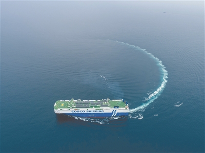中船集团广船国际建造的7000车LNG双燃料汽车运输船“远海口”轮首航。广州日报全媒体记者陈忧子 摄