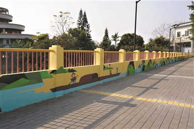 广州日报讯 (全媒体记者黄文生 通讯员谢文柱摄影报道)新会区大泽镇滨江公园内,近日,一幅长达800米、面积640平方米的巨幅墙绘格外引人注目,这幅作品融合了红色文化、龙舟文化、客家文化、红木文化等多种元素,由大泽镇“双百行动”结对学校——广州美术学院的学生们创作,已成为当地新的文化地标。