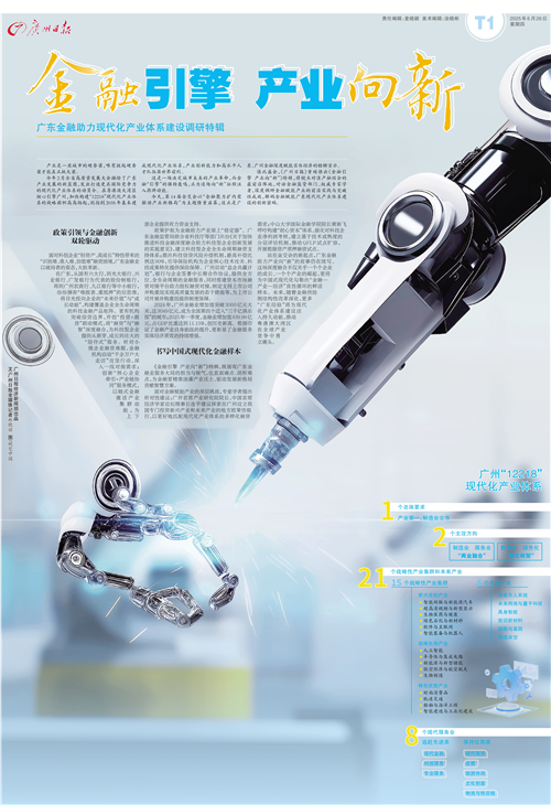 值此盛会,《广州日报》重磅推出《金融引擎 产业向“新”》特辑,将镜头对准产融结合的最前沿阵地,对话金融监管部门、权威专家学者,深度调研金融赋能产业的前沿实践与突破性成效,解码金融赋能广东现代化产业体系建设的创新密码。