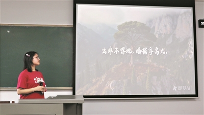 潘莹在课堂上讲解用AI技术制作的杜甫《病柏》朗诵视频。