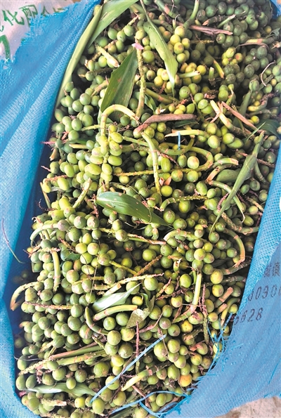 随后,在洪冠镇洪冠、洪胜、云丽等行政村,记者看到许多村民用摩托车或小货车载着一袋袋的益智前往收购站,过秤、计数、收钱,忙个不停。收购商龙生告诉记者,益智上市以来,每天收购1.3万至2万公斤,今年益智价格每公斤14元至16元。收购商除了收购生果,还收购干果。记者看到,洪冠村一些村民把部分生果放到晒场上晒干。目前,干果的价格每公斤达到60多元。