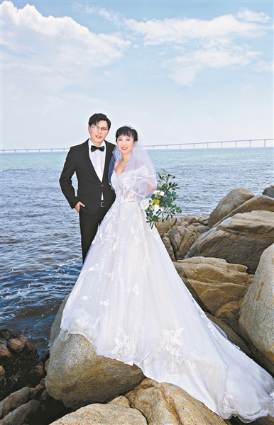 孙悦楠和爱人特意以港珠澳大桥为背景拍摄婚纱照。(资料图片)