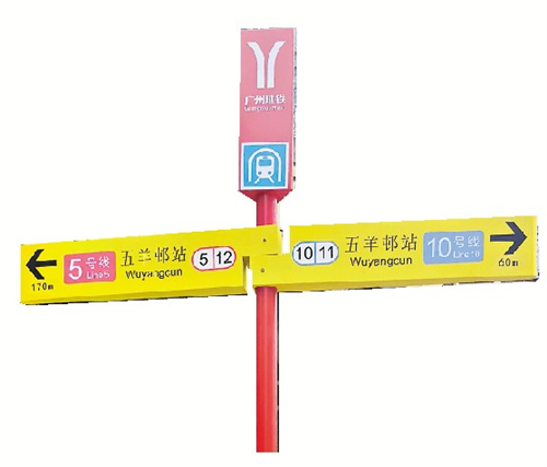 五羊邨站:十号线连接五号线的站内换乘通道尚未建成,换乘5号线需通过蓝色专用闸机出站,30分钟内在另一线路蓝色闸机进站,计费等同于站内换乘,步行约6分钟。