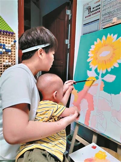 小仁宣也知道妈妈喜欢画画,尽管因为手术他丧失了语言功能,但每次只要看到妈妈拿起画笔,他都会努力保持安静,守在妈妈身后。