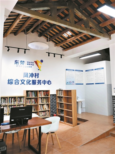 “三多堂”曾是凤冲村一处具有历史意义的传统建筑,因年久失修逐渐闲置,成为堆放杂物的角落。在“民生大莞家”项目的帮扶下,凤冲村村委决定盘活这一资源,以“保护传统建筑+赋能文化生活”为目标进行改造,不仅修缮了建筑主体,还保留着青砖红墙的古朴风貌,更在内部规划了阅读区、电子阅读区、儿童活动区等多个功能空间。据介绍,书屋自购各类书籍2000余册,涵盖文学名著、少儿读物、健康养生等类别,搭配上网设备与多媒体终端,村民既可以查阅资料、学习技能,也能通过网络了解更多信息。儿童活动区配备的“童趣角落”,成为孩子们放学后的“快乐驿站”。