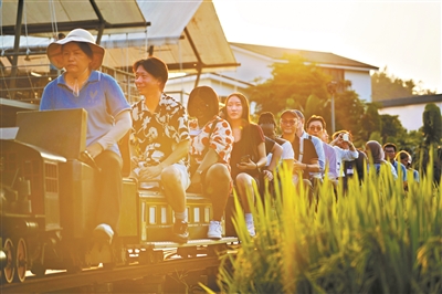 在良口镇米埗村,领团一行在特色小火车上游览。 广州日报全媒体记者吴子良 摄