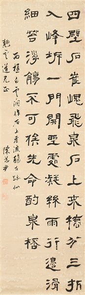 陈恭尹的书法也很精彩,时称清初“广东第一隶书高手”。他的笔法除古拙浑厚之外,更有一种洒脱高迈的气概。广州市北京路南段“太平沙”的题字,就源自陈恭尹之手。黄埔区夏园村挂在村口的“夏园乡”石匾,也是出自陈恭尹手书,至今仍在。陈恭尹的传世书迹目前主要收藏于北京故宫博物院、中国国家博物馆、广东省博物馆等地。