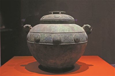 展览中展出的“王子午”鼎出土于河南淅川,是迄今所知我国采用失蜡法制作的最早铸件之一。器壁内侧铸鸟篆铭文14行84字,大意为王子午铸鼎以祭先祖文王和进行盟祀,并因施行德政,受到楚国民众的敬重,希望子孙后代以此作为行动准则。鸟篆铭文字体纤秀隽美,有确切纪年。该鼎的主人王子午为楚庄王之子、楚康王时期的令尹子庚。“王子午”鼎被誉为“鼎中翘楚”,代表了春秋时期楚国青铜器的风貌,是研究楚文化的标准器。