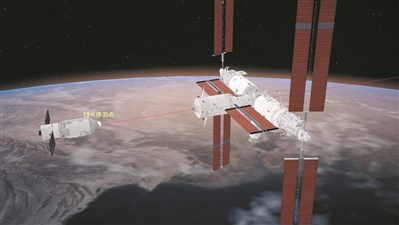 模拟图像,天舟九号在19米停泊点。