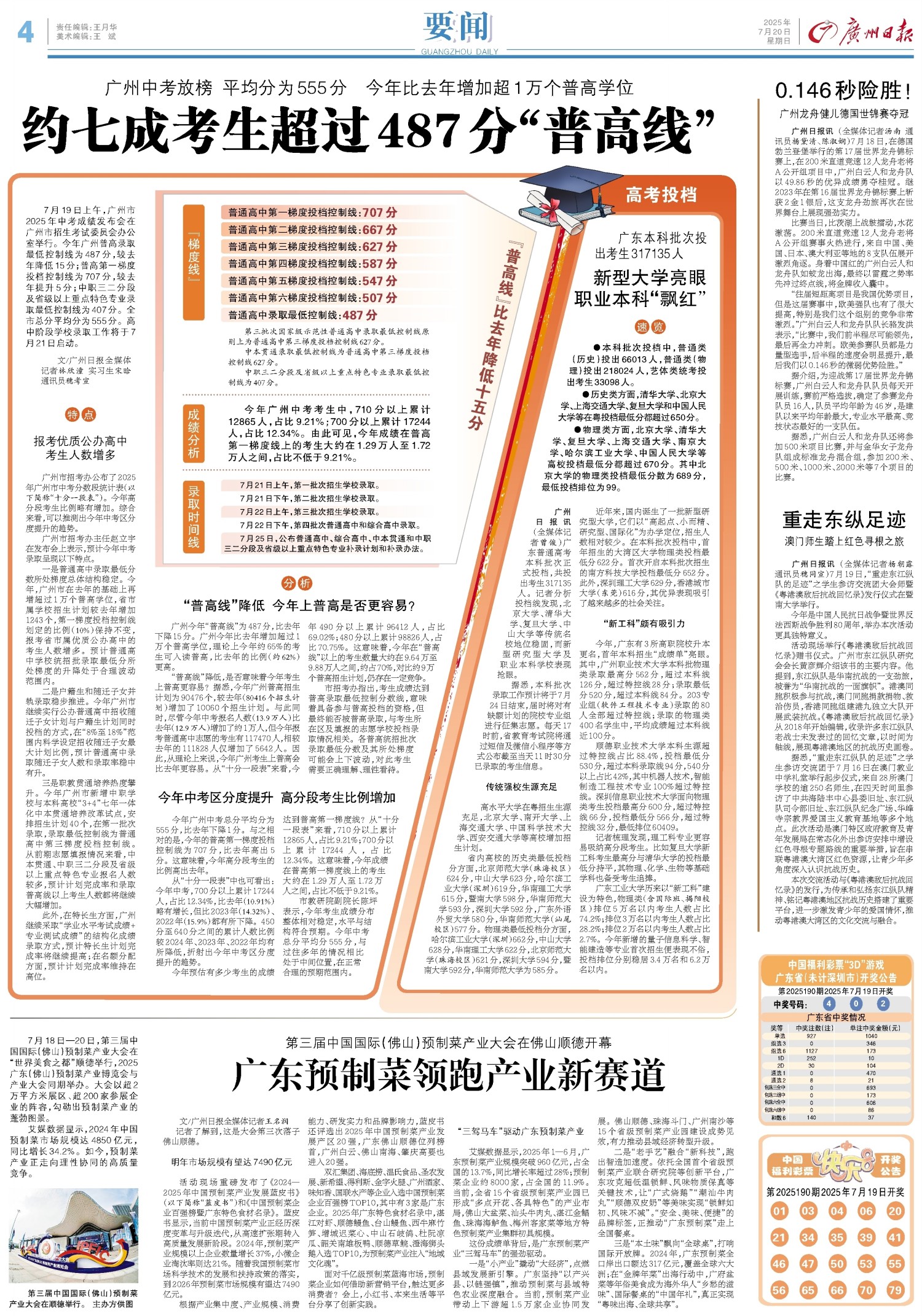 约七成考生超过487分“普高线”
