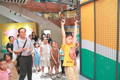 这一活动由东莞市科协、市教育局、市文广旅体局主办,东莞科学馆承办,举重博物馆、市篮球协会协办。本次科普展全面融入第十五届全国运动会元素,精心打造四大主题展区:“卡路里的奇幻漂流记”提供了综合体适能测试仪,帮助大家充分了解自己的身体与运动能力;“动静能量大对决”通过动态运动和静态运动,让游客感受两者的区别;“卡路里消耗大闯关”,让游客可以在玩乐中燃烧卡路里,还能锻炼身体各方面能力如敏捷度、协调力,学会科学运动;“‘动’莞能量大跃升”,让游客在这里可以对话东莞的体育传奇。