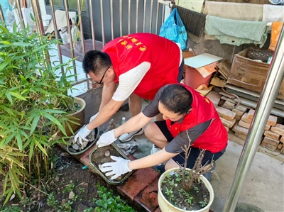 街道、社区、公园、市场、车站……广大党员干部正积极投身防控蚊媒一线,深入绿化带里的“隐蔽处”、天台楼顶的“小空间”、房前屋后的“微角落”,对积水容器、废弃瓶罐、堵塞下水道等蚊虫孳生地逐一清理,阻断疫情传播链条,为保障市民健康平安积极贡献力量。