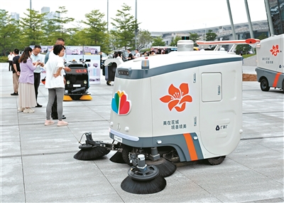 无人驾驶清扫车将穿梭在十五运会场馆间。广州日报全媒体记者庄小龙 摄