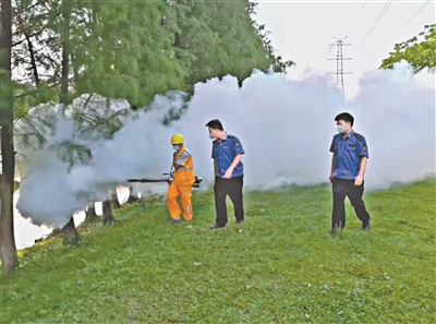在松山湖中部的一个闲置地块内,一架无人机缓缓升空,开始喷洒灭蚊药液。随着飞行路线的变化,药剂均匀地喷洒到草木和树枝上。无人机的精准操作不仅提高了消杀效率,还有效克服闲置地块复杂地形和分散区域的挑战。这些无人机日均作业面积可达到200亩,显著提高灭蚊作业效率,能自动调整飞行高度,覆盖传统人工喷洒药物无法到达的盲区,确保消杀到位。