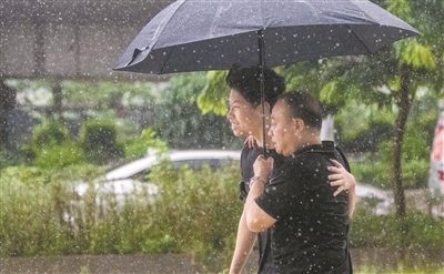 广州下起大雨,行人冒雨赶路。广州日报全媒体记者廖雪明摄