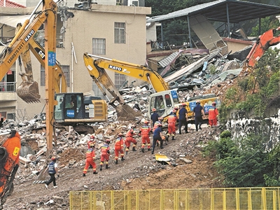 昨日14时,白云区大源村雨势较大。17时35分,山体垮塌现场的破除工作暂停,消防人员进入救援现场。现场采取机械与消防员轮番作业的方式推进救援,部分精细搜索任务需由消防员完成。截至8日0时50分,14名被困人员已找到11人。